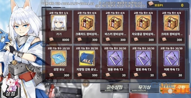기존에 상시 판매가 되던 라피, 아카시, 프린츠 오이겐을 제외한 이번 신년 스킨들은 전부 2019년 1월 16일까지 판매된다.