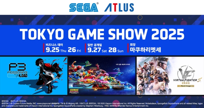 세가퍼블리싱코리아(대표 사이토 고)는 2025년 9월 25일(목)부터 9월 28일(일)까지 마쿠하리 멧세에서 열리는 '도쿄 게임쇼 2025'(이하, 'TGS2025')의 세가/아틀...