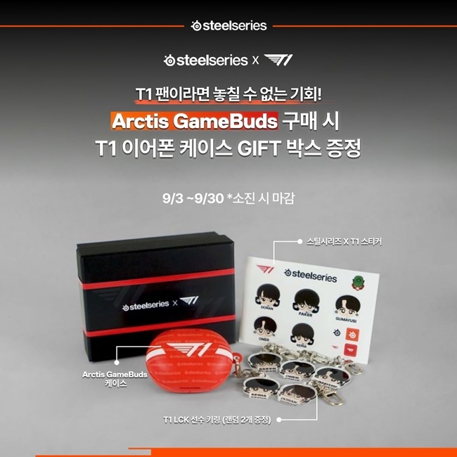 게이밍 기어 브랜드 스틸시리즈(SteelSeries, CEO 에티샴 라바니)가 '아크티스 게임버즈' 구매 시 T1 이어폰 케이스 기프트 박스를 증정하는 이벤트를 진행한다....