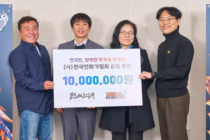 엠게임(대표 권이형)은 자사의 대표 PC MMORPG(다중접속역할수행게임) ‘열혈강호 온라인’의 원작자인 양재현·전극진 작가와 함께 한국만화가협회에 공동 후원금 1천만...