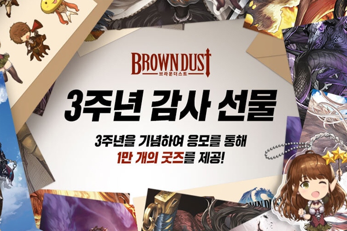 (주)네오위즈(대표 문지수)는 자사가 서비스하고 (주)겜프스(대표 이준희)에서 개발한 모바일 전략 RPG '브라운더스트'가 서비스 3주년을 맞아 이용자들에게 감사의 선물...