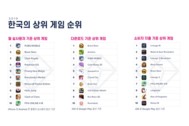 한국이 2019년 출시된 신규 모바일 게임 ARPU에서 전 세계 1위를 차지한 것으로 나타났다. 모바일 데이터 분석 플랫폼인 앱애니가 2019년 전 세계 모바일 앱 생태계와 트...
