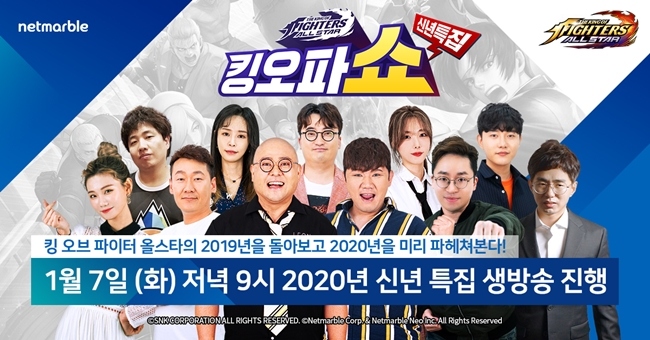 넷마블(대표 권영식)이 7일 오후 9시 자사의 액션 RPG '더 킹 오브 파이터즈 올스타(이하 킹 오브 파이터 올스타)' 전문 채널 '킹오파쇼'의 신년 특집 방송을 진행한다. ...