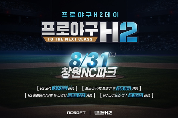 모바일 야구 매니지먼트 게임 '프로야구 H2'를 서비스 중인 엔씨소프트(대표 김택진, 이하 엔씨)가 오는 8월 31일, 창원엔씨파크에서 '프로야구 H2 데이'를 개최한다. 프...