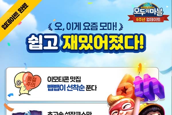 넷마블(대표 권영식)이 자사의 모바일 캐주얼 보드게임 '모두의마블'에서 출시 6주년 대규모 업데이트를 실시했다. 이번 6주년 업데이트는 사전 예약 이벤트를 통해 역대...