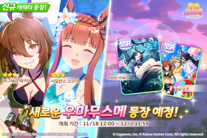 (주)카카오게임즈(대표 한상우)는 18일, ㈜사이게임즈(대표 와타나베 코이치)가 개발한 인기 게임 ‘우마무스메 프리티 더비’에 신규 의상 육성 우마무스메와 스토리 이...