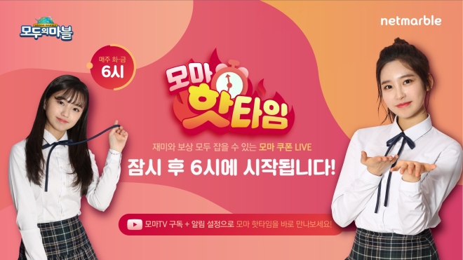 넷마블(대표 권영식)이 자사가 서비스하는 모바일 보드게임 '모두의마블'의 이용자를 위한 라이브 쿠폰 방송 '모두의마블-모마 핫타임'을 진행한다. 최연소 아이돌 그룹 ...
