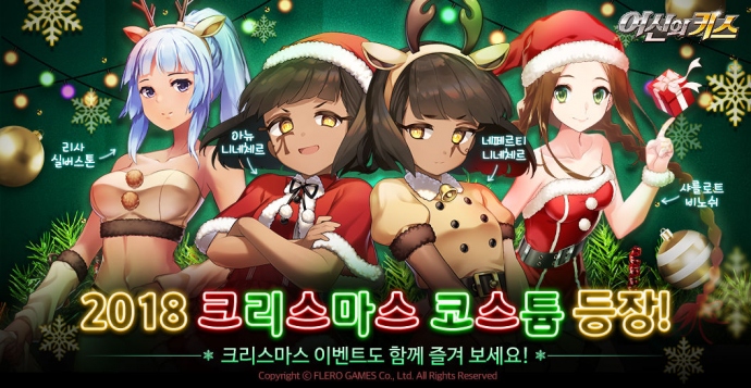플레로게임즈(대표 이호대)가 미소녀 수집형 RPG '여신의 키스'의 크리스마스 업데이트를 실시했다. 먼저 이번 크리스마스 업데이트를 통해 신규 크리스마스 코스튬 4종...