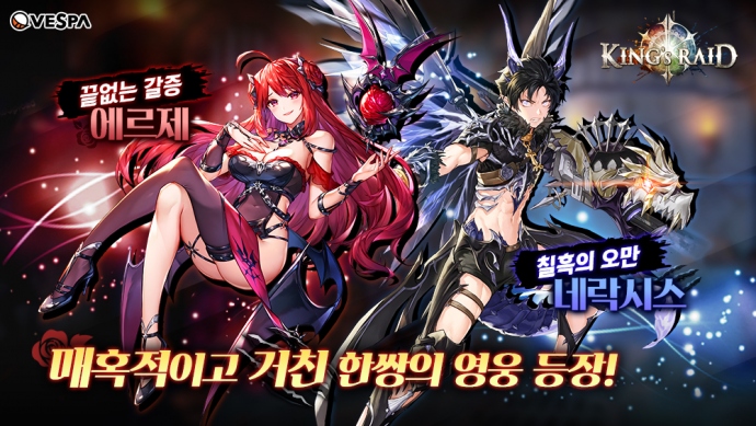 베스파(대표 김진수)가 자사 모바일 RPG '킹스레이드'의 정기 업데이트를 통해 신규 영웅 및 코스튬을 선보였다. 새롭게 추가된 영웅은 '끝없는 갈증 에르제...
