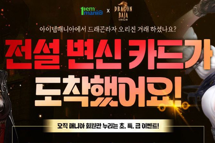 아이엠아이가 운영하는 국내 최대 게임 아이템 거래 사이트 아이템매니아가 ‘드래곤라자 오리진’의 이벤트를 진행한다고 22일 밝혔다. 드래곤라자 오리진은 아이톡시가...