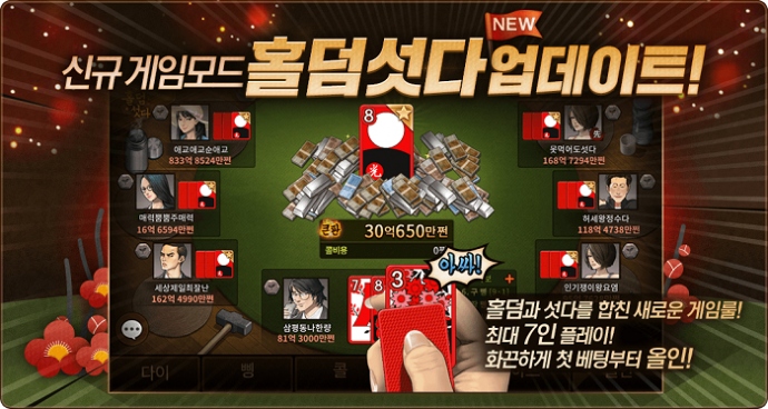 NHN엔터테인먼트(대표 정우진)가 자사에서 서비스하는 '모바일 한게임 섯다'에 섯다를 홀덤으로 즐기는 '홀덤 섯다' 모드를 오픈했다. '홀덤 섯다...
