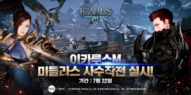 위메이드서비스(대표 송모헌)가 위메이드이카루스(대표 장현국)에서 개발하고 자사가 퍼블리싱하는 모바일 MMORPG '이카루스M'의 게릴라 테스트 2탄 '미들라...