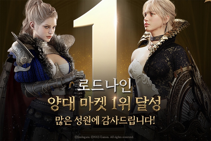 스마일게이트는 '올클래스(ALLCLASS)' MMORPG(다중접속역할수행게임) '로드나인(개발사 엔엑스쓰리게임즈)'가 애플 앱스토어와 구글 플레이스토어에서 최고 매출 순위 1...