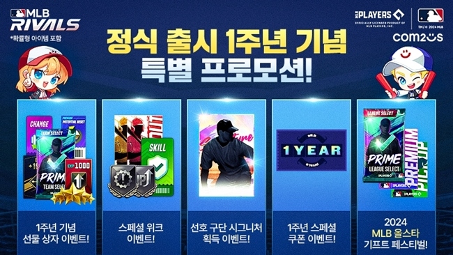 컴투스(대표 남재관)가 글로벌 인기 모바일 야구게임 'MLB 라이벌'의 출시 1주년을 맞아 다양한 혜택을 제공하는 축제를 개최한다. 우선 'MLB 라이벌'의 출시일인 7월 5...