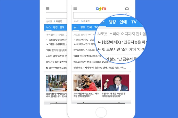 카카오(대표 임지훈)가 모바일 다음(Daum) 첫 화면에 새로운 뉴스 추천 기능을 도입했다. 인공지능 플랫폼 '카카오 I' 의 추천 엔진을 활용, 모바일 다음 첫 화면에서 뉴...