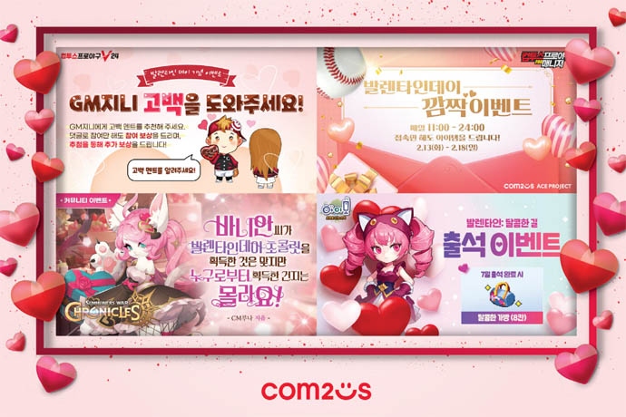 컴투스(대표 이주환)는 밸런타인데이를 맞아 자사 인기 게임 4종에서 이벤트를 실시한다. 컴투스 대표 야구 게임 시리즈 2종을 비롯해 '서머너즈 워: 크로니클', '아이모...