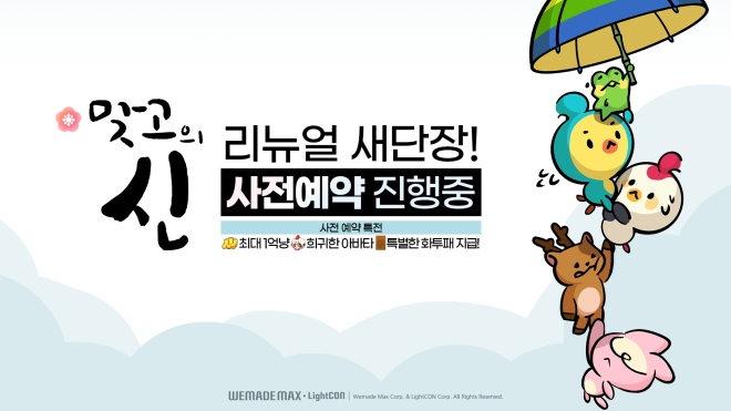 위메이드맥스(공동대표 장현국, 이길형)의 자회사 라이트컨이 자사에서 개발하고 서비스 하는 모바일 보드게임 '맞고의신' 서비스 7주년을 기념한 리뉴얼 업데이트 사전 ...