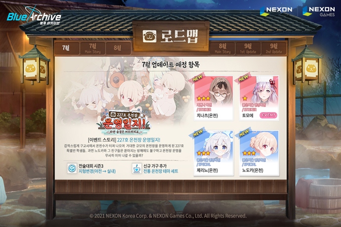 (주)넥슨(대표 이정헌)은 자회사 넥슨게임즈(대표 박용현)에서 개발한 서브컬처 게임 '블루 아카이브'의 이벤트 스토리 '227호 온천장 운영일지' 사전등록을 29일 시작한...