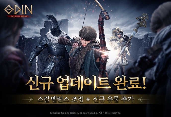 카카오게임즈(대표 조계현)가 16일, 개발 명가 라이온하트 스튜디오(대표 김재영)에서 개발한 대작 MMORPG '오딘: 발할라 라이징(이하 '오딘')'에 신규 유물 및 클래스 ...
