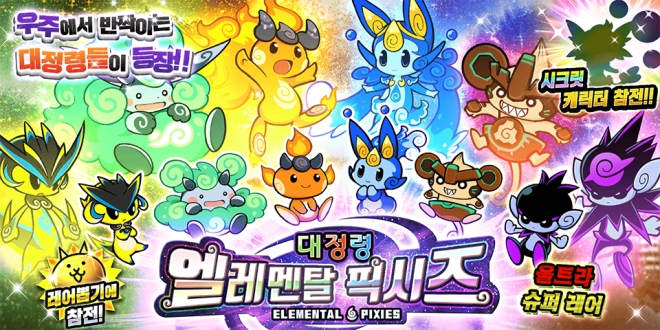 주식회사 포노스(대표 츠지코 요리카츠)가 병맛 & 귀염 타워디펜스 게임 '냥코 대전쟁'의 레어 뽑기 시리즈 '대정령 엘레멘탈 픽시즈'에 신규 캐릭터가 등장했다. 이...