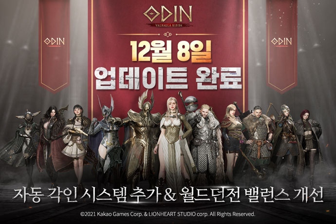 (주)카카오게임즈(각자 대표 남궁훈, 조계현)가 8일, 개발 명가 라이온하트 스튜디오(대표 김재영)의 대작 MMORPG '오딘: 발할라 라이징(이하 '오딘')'에 자동 각인 시스...