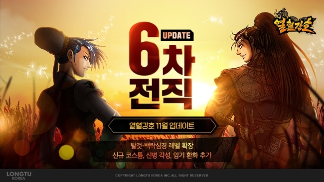 룽투코리아가 자사가 서비스중인 모바일 MMORPG(다중접속역할수행게임) '열혈강호'에 신규 업데이트를 실시했다. 이번 업데이트로 열혈강호의 '6차전직'이 개방됐다. '6...