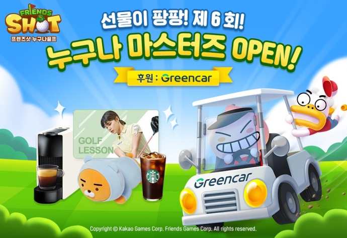 카카오게임즈(각자 대표 남궁훈, 조계현)가 16일, 자사에서 서비스 중인 캐주얼 모바일 게임 '프렌즈샷: 누구나골프'와 롯데렌탈 카셰어링 자회사 '그린카'가 협업하여 '...