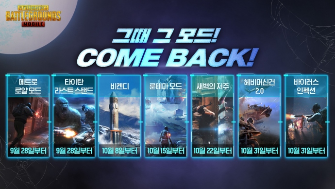 크래프톤(대표 김창한)이 배틀그라운드 모바일의 할로윈 맞이 10월 콘텐츠를 공개했다. 우선, 이용자들에게 많은 사랑을 받았던 모드들이 할로윈을 맞아 다시 열린다. ▲...