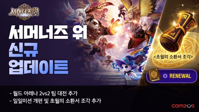 모바일 게임 기업 컴투스(대표 송재준, 이주환)가 글로벌 히트작 '서머너즈 워: 천공의 아레나(이하 서머너즈 워)'에 신규 실시간 PvP(유저 간 대전)인 '2vs2 팀 대전 모...