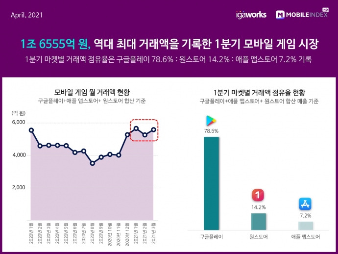 국내 최대 모바일 빅데이터 플랫폼 기업 아이지에이웍스가 자사의 데이터 분석 솔루션 '모바일인덱스'를 통해 '2021년 1분기 모바일게임 시장 동향' 리포트를 발표했다. ...