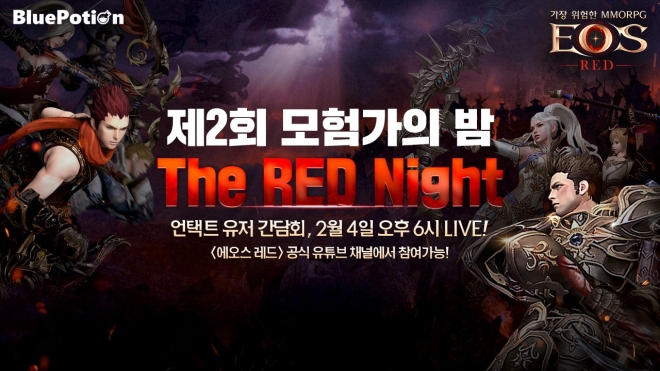 블루포션게임즈(대표 신현근)가 자사에서 직접 개발하고 서비스하는 모바일 정통 MMORPG '에오스 레드'의 유저간담회 '제2회 모험가의 밤 : The RED Night'를 2월 4일 18...