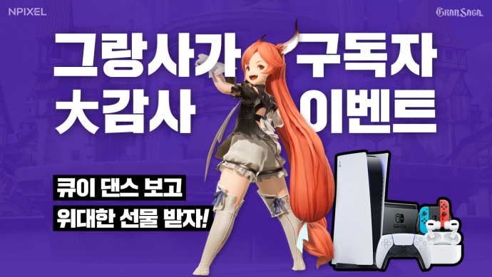엔픽셀(공동 대표 배봉건, 정현호)이 모바일 MMORPG '그랑사가'의 유튜브 구독자 대감사 이벤트를 실시한다. 이벤트는 금일(31일)부터 내년 1월 14일까지 2주간 진행된다...