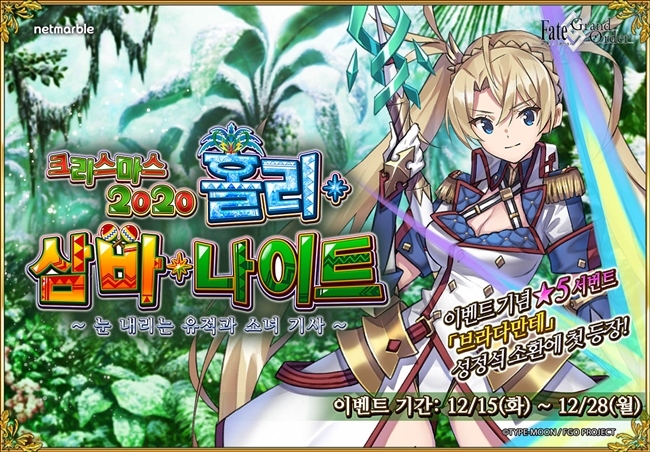 넷마블(대표 권영식, 이승원)이 모바일 RPG(역할수행게임) '페이트/그랜드 오더(Fate/Grand Order)'에서 신규 이벤트 '크리스마스 2020 홀리 삼바 나이트'를 28일까지 개...