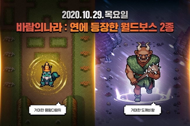 넥슨(대표 이정헌)이 30일 모바일게임 개발사 슈퍼캣(대표 김원배)과 공동개발한 모바일 MMORPG '바람의나라: 연'에 월드보스 2종을 추가했다. 월드보스 '거대한 용왕다...