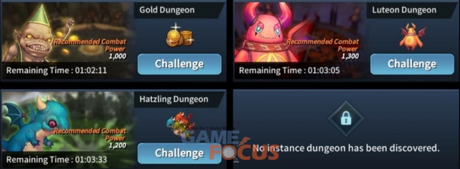 '돌발 던전'은 스토리 던전 클리어 시 일정 확률에 의해 출현하는 히든형 던전이다. 타입은 총 3가지가 있으며, 각각 진행 방식과 보상이 다르게 구성된 것이 특징이다. 보물 고블린을 처지하고 골드를 수급하거나, 해츨링 획득과 마나석을 얻을 수도 있다.