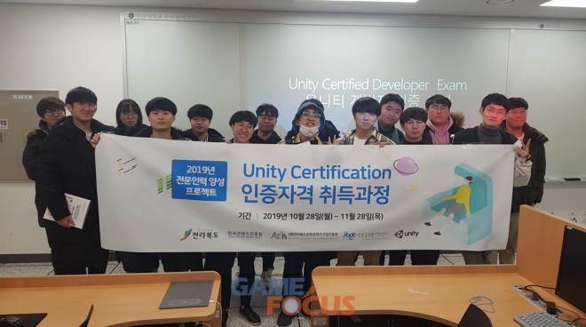 전라북도와 전북 글로벌게임센터(이하 전북게임센터)는 도내 게임 콘텐츠제작분야로 취업을 희망하는 취업준비생, 대학생, 창업준비자, 일반인 대상으로 Unity를 활용한 기업 맞춤형 교육을 진행했다. 'Unity Certification 인증자격 취득과정(이하 교육과정)' 교육은 10월 28일부터 11월 28일까지 진행했으며 교육생 15명이 수료했다.