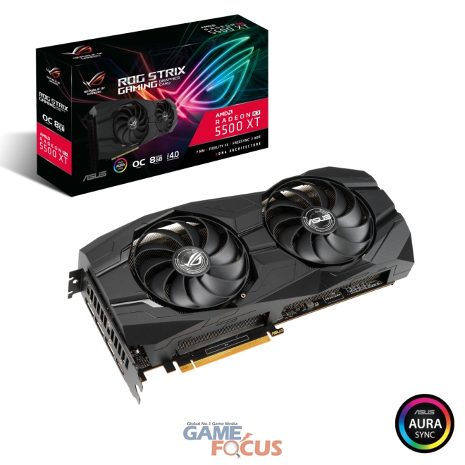 AMD 코드명 Navi RDNA를 기반으로 하는 Radeon RX 5500XT GPU 시리즈는 미세 공정으로 제작되어 보다 향상된 성능과 월등한 저전력을 기반으로 하고 있다. 에이수스는 AMD Radeon RX 5500XT를 베이스로 독자적인 기술을 적용하여 1080p의 해상도에서 압도적인 게임성능을 제공하는 게이밍 ROG 라인업의 ROG STRIX Radeon RX 5500XT O8G GAMING과 ASUS DUAL Radeon RX 5500XT O8G 2종을 선보인다.