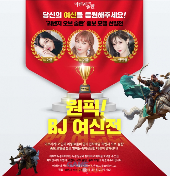 ‘리벤지 오브 술탄’의 ‘원픽! BJ 여신전’ 이벤트에 대한 보다 자세한 내용은 이벤트 페이지와 공식 카페에서 확인할 수 있다.