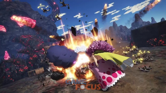 17일 공개된 최신 PV에서는 플레이어블 캐릭터로 등장하는 '사황' 빅 맘 해적단의 선장 '샬롯 링링'과 백수 해적단 총독 '카이도'의 거대 무쌍 액션을 감상할 수 있다. 지금까지의 '해적무쌍'과는 차원이 다른 사이즈, 공격력, 위력을 선보인다.