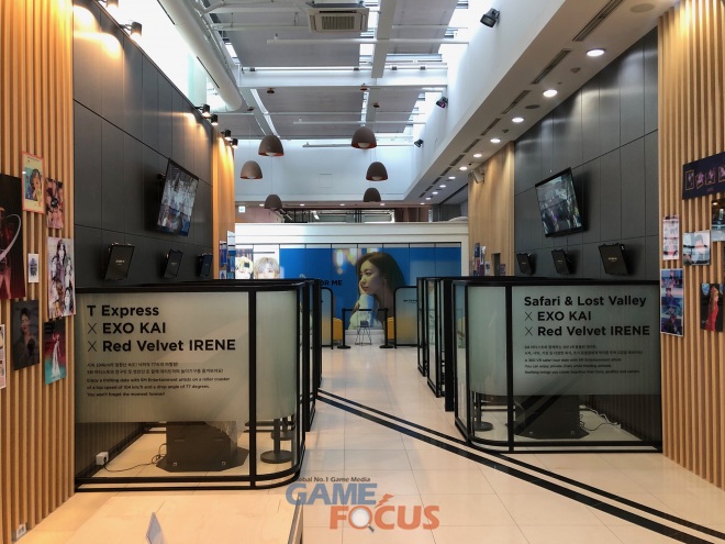 현재 SMTOWN 코엑스아티움 6층에 신설된 VR 테마파크에는 오픈을 앞두고 5가지 종류의 VR 체험 시설이 설치 완료 되었으며, 방문객들은 이를 통해 가상 현실 속에서 국내 최고의 K-POP 아티스트와 함께 하는 색다른 경험을 즐길 수 있다. 특히 에버랜드와 함께 제작한 시그니쳐 투어코스 '사파리' & 로스트 밸리' 및 'T-Express' 가상 체험을 통해 레드벨벳의 '아이린' 또는 엑소의 '카이'와 나란히 앉아 라이드를 즐겨볼 수 있다.