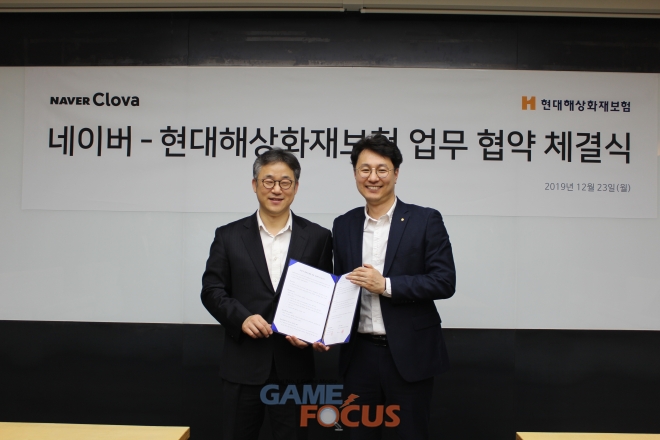 지난 23일 경기도 성남시에 위치한 네이버 본사 그린팩토리에서 열린 이날 협약식에는 네이버 서치앤클로바 사업부문 정석근 책임리더와, 현대해상 디지털전략본부 정규완 본부장 등 관계자들이 참석했다.