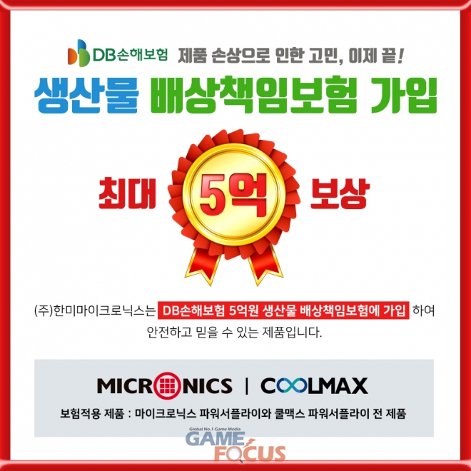 책임보험 대상 제품은 '마이크로닉스' 파워서플라이 및 '쿨맥스(COOLMAX)' 브랜드의 파워서플라이 제품들로 두 브랜드의 전 제품 모두 동일하게 최대 5억 원의 보상이 제공된다.