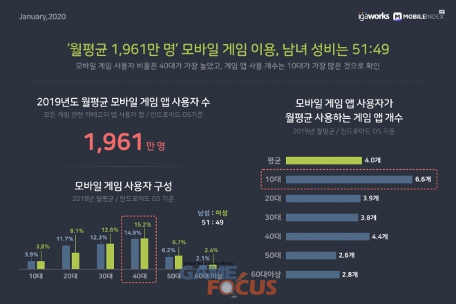 월평균 1,961만명 모바일 게임 이용, 남녀 성비는 51:49
