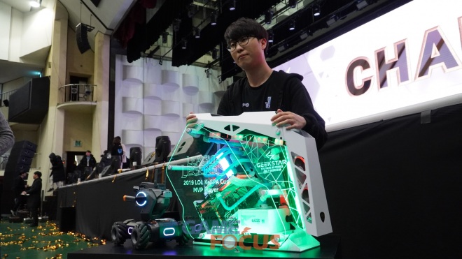 MVP 부상으로 주어진 긱스타 수냉 커스텀 PC는 인텔 i7-9700KF와 지포스 RTX 2080 SUPER 8GB, 기가바이트 Z390 UD 등 하이엔드 부품으로 구성됐다. 여기에 LED 조명과 커스텀 냉각수 관, MVP 수상자를 위한 별도 각인까지 새겨져 있다.