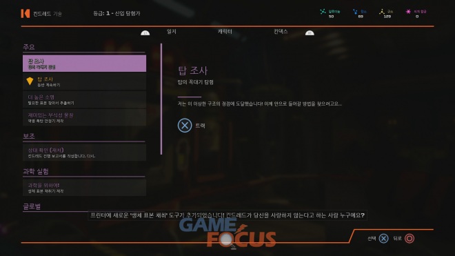 수수께끼 해결 – AR-Y 26의 여기저기에서 접할 수 있는 수수께끼의 미스터리들을 해결하고 행성의 조사를 완료하자.