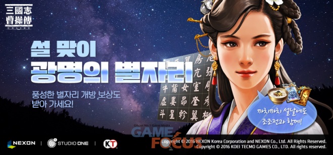 '삼국지조조전 ONLINE'에서는 2월 5일까지 '사건', '무장전', '사신전' 등에 참여하면 '떡국', '7등급 보물 확정권', '4등급 백호의 보패 확정권' 등 보상으로 교환 가능한 '별모래'를 제공한다. 또 1월 29일까지 '설 맞이 매일 선물' 이벤트로 '떡국 10개'와 보물 조각, 특별 교환권 등을 얻을 수 있는 '거함 교환권'을 지급하고, 일반 사신 토벌 승리 횟수에 따라 '금전', '무장전 입장권' 등을 제공한다.