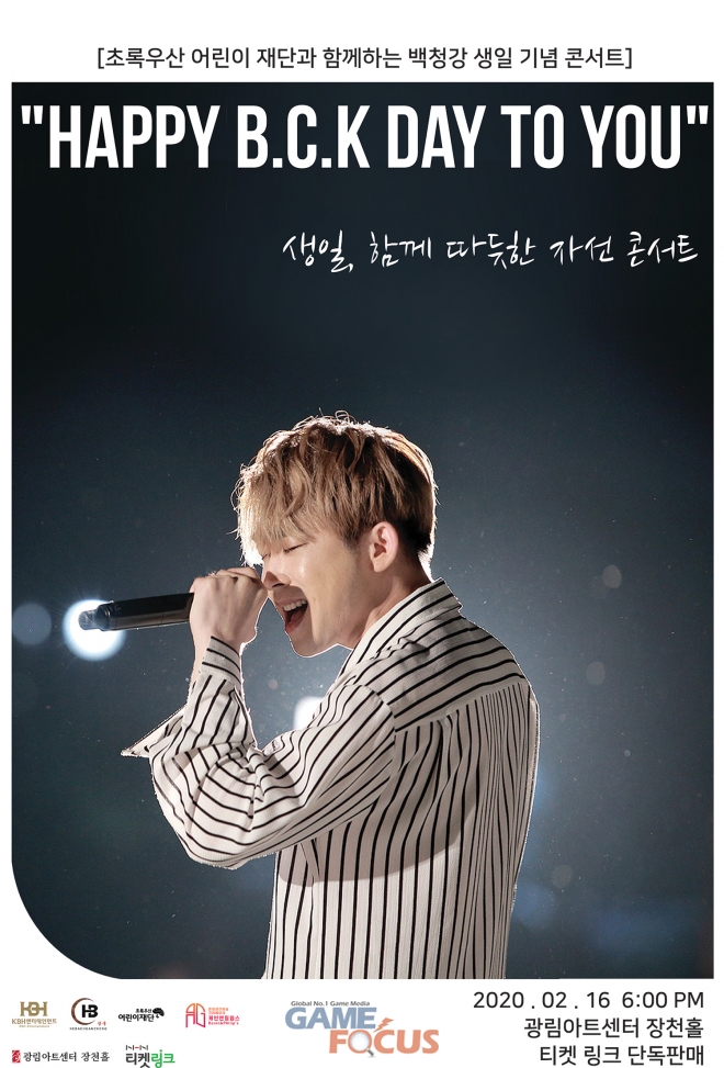NHN티켓링크(대표 고영준)가 자사에서 운영하는 티켓포털 '티켓링크'에서 '초록우산 어린이 재단과 함께하는 백청강 생일 기념 콘서트 'Happy B.C.K Day to You'(이하 백청강 콘서트)' 티켓을 단독 판매한다.
