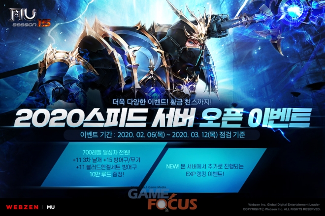 웹젠(대표 김태영)이 자사의 PC MMORPG '뮤 온라인'에서 '2020년 스피드 서버'를 오픈하고 '레벨 달성 보상', '무료 서버 이전' 등 다양한 이벤트를 진행한다.