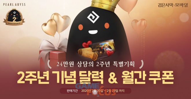2주년을 앞두고 제작한 '2주년 기념 달력'의 판매도 시작했다. 달력은 2020년 3월부터 사용 가능하며 매월 1개씩 사용 가능한 '1,000 블랙펄' 쿠폰 12개가 포함됐다. 이용자는 최근 오픈한 '펄어비스 스토어'에서 달력을 구매할 수 있다.