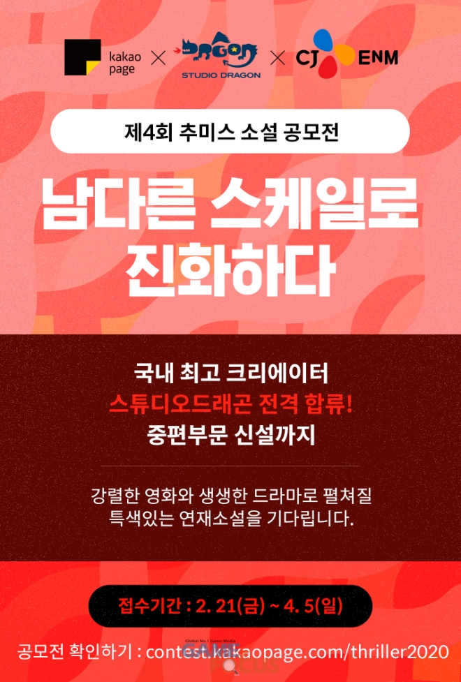 카카오페이지가 CJ ENM, 스튜디오드래곤과 함께 '제4회 추미스(추리, 미스터리, 스릴러) 소설 공모전'을 개최한다.